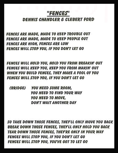 DENNIS CHANDLER CLEBERT FORD FENCES THE SONG LYRIC SHEET
