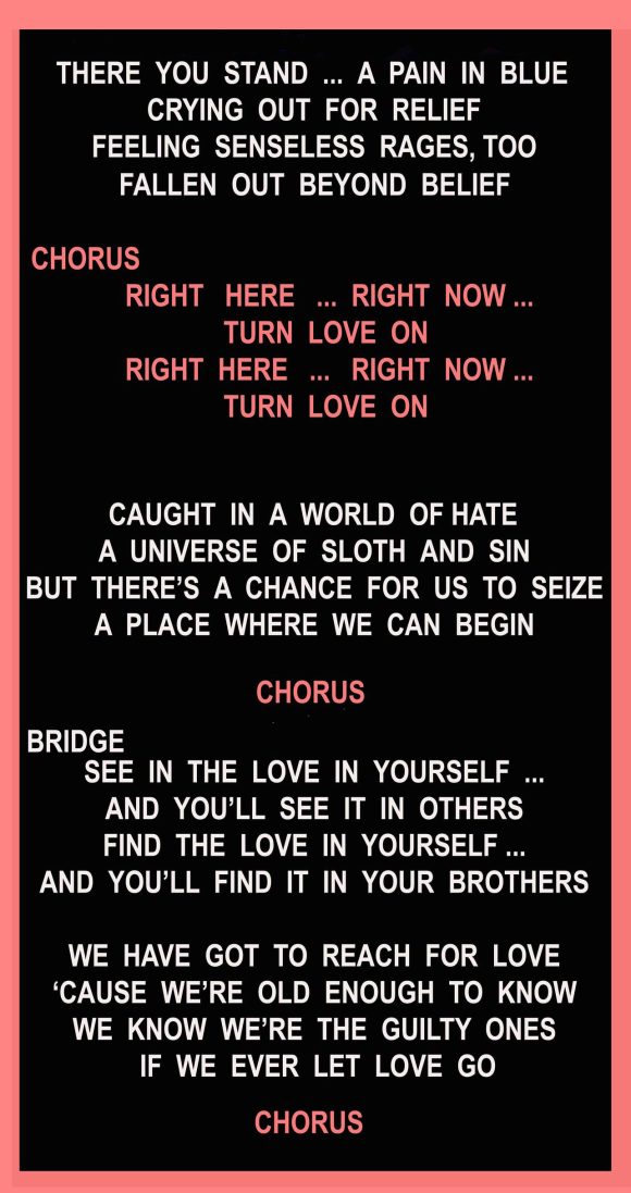 DENNIS CHANDLER PHIL SMOLUK SONG RIGHT HERE RIGHT NOW (TURN LOVE ON) b